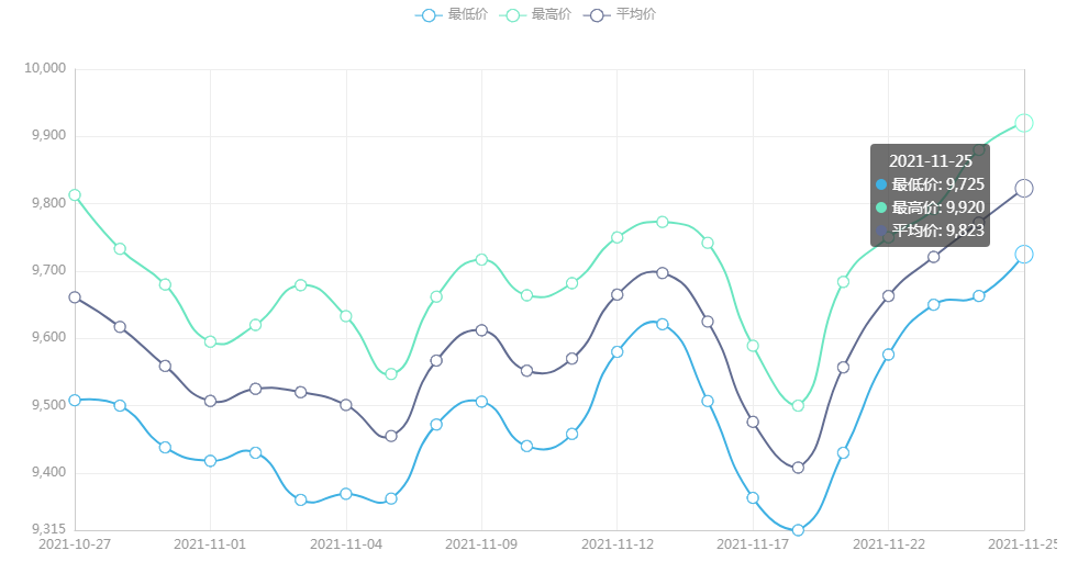 今日最新铜价(2021年11月25日)LME铜价格走势图