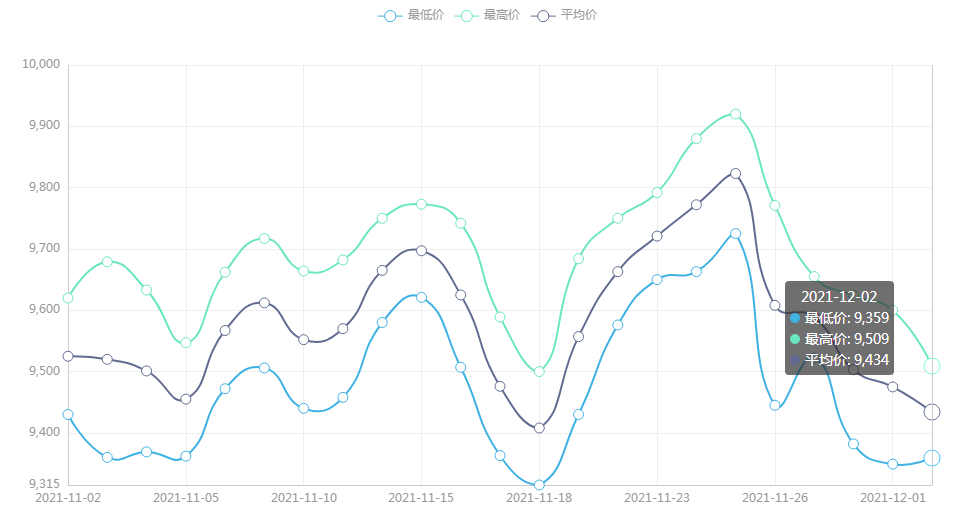 今日最新铜价(2021年12月2日)LME铜价格走势图
