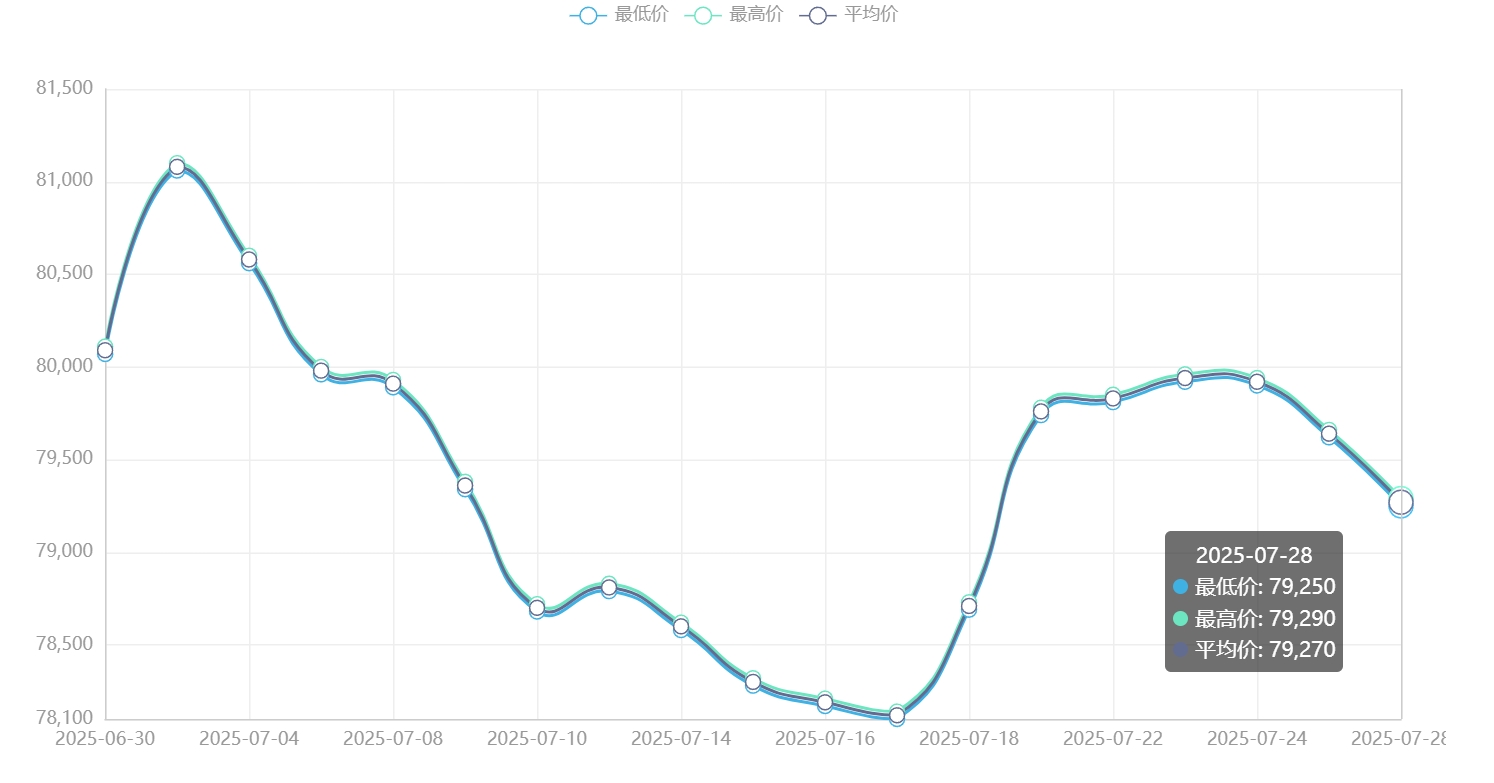 今日铜价(7月28日)长江现货铜价格走势图