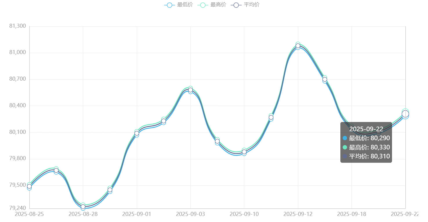 今日铜价(9月25日)长江现货铜价格走势图