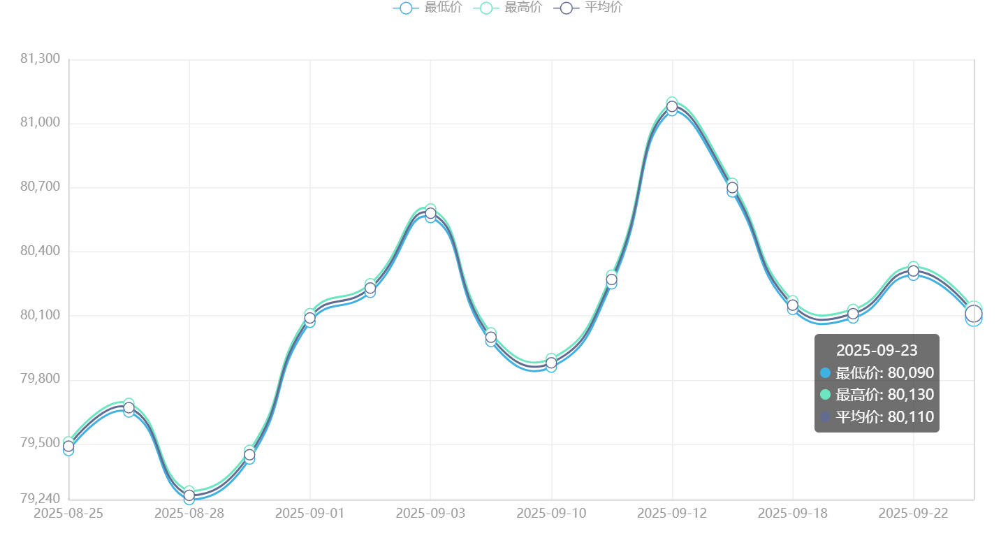 今日铜价(9月25日)长江现货铜价格走势图