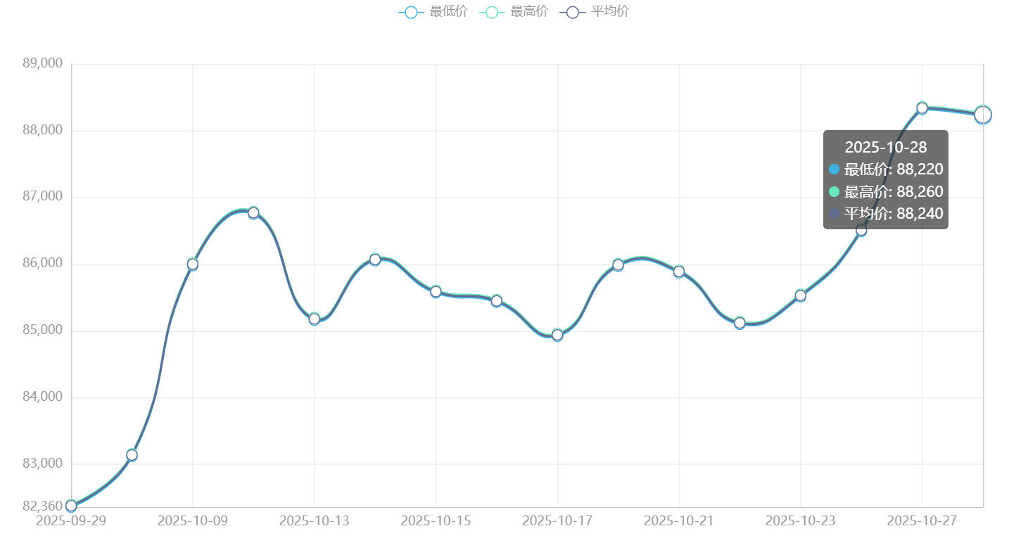 今日铜价(10月28日)长江现货铜价格走势图