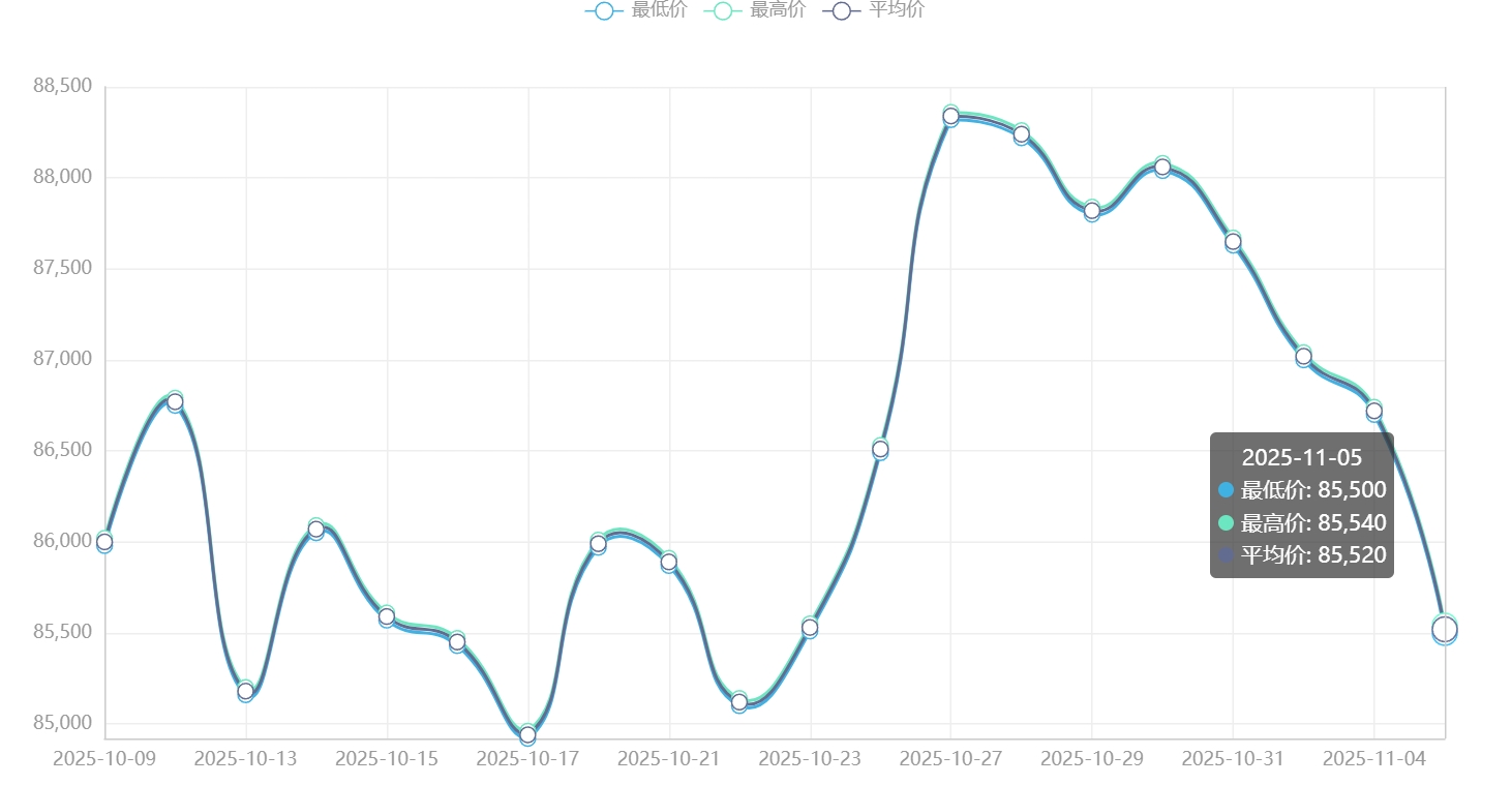 今日铜价(11月5日)长江现货铜价格走势图