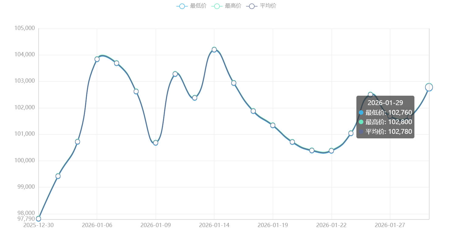 今日铜价(1月29日)长江现货铜价格走势图